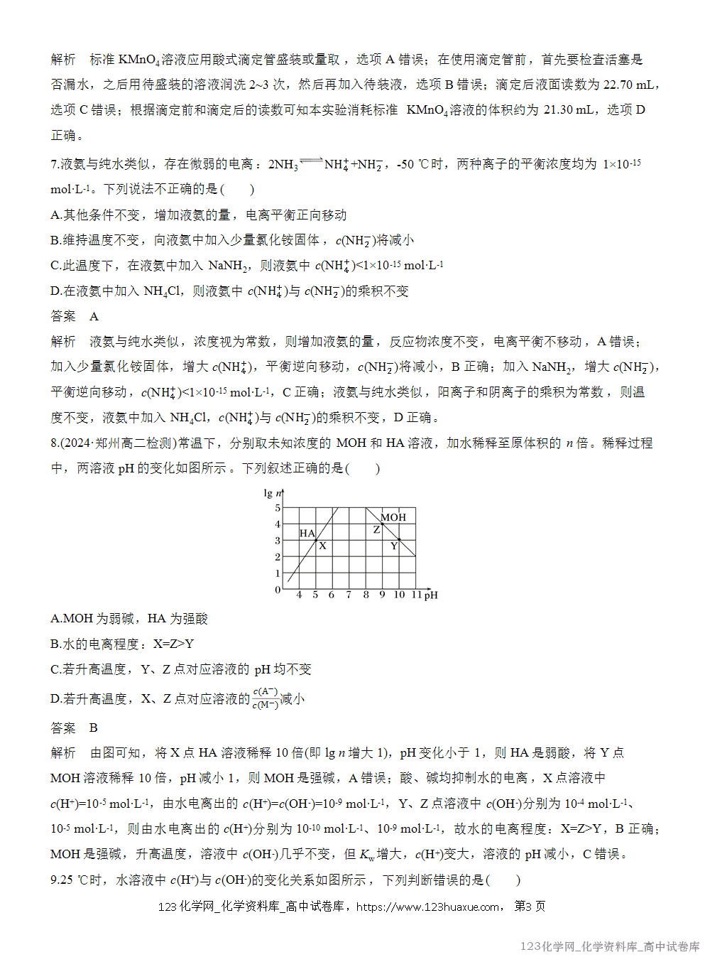 3.在25 ℃时,某稀溶液中由水电离产生的c(OH-)=10-10 mol·L-1。下列有关该溶液的叙述正确的是( )