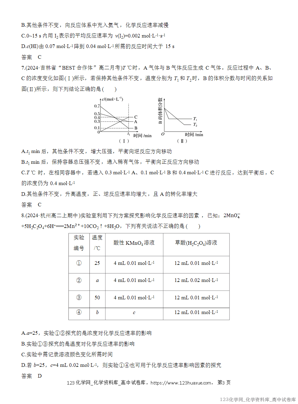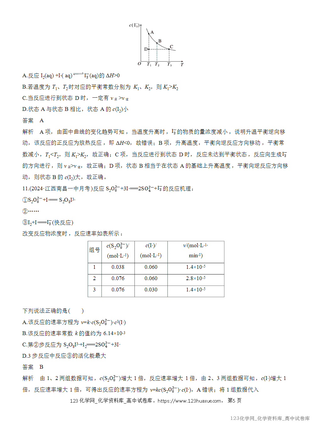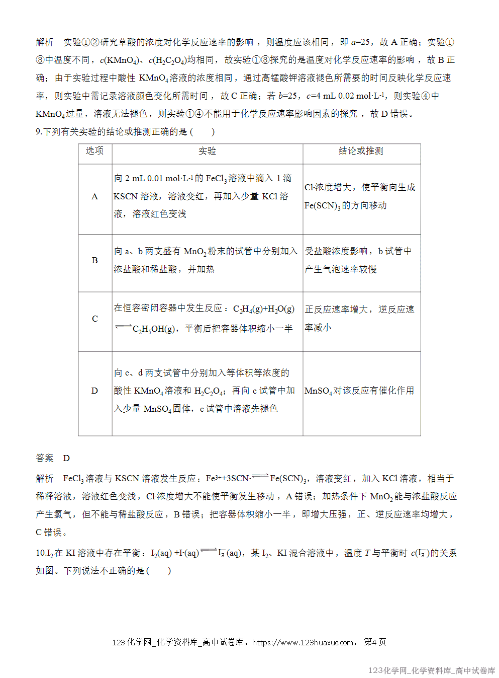 D.加入Cl2,平衡向正反应方向移动,Cl2的转化率一定升高