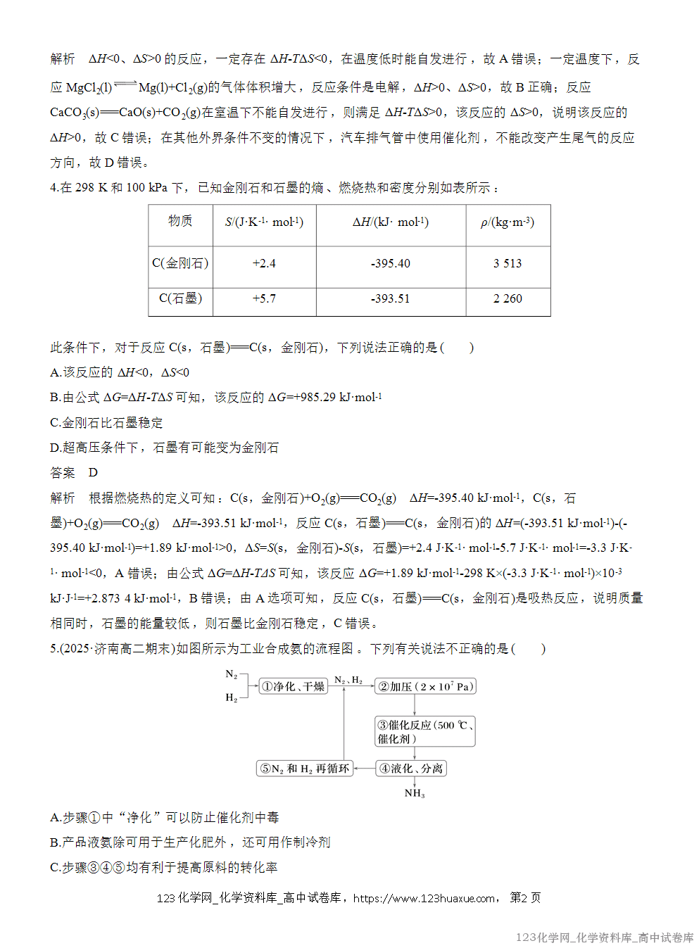 2.合成氨是人类科学技术发展史上的一项重大突破,其反应为N2(g)+3H2(g)2NH3(g) ΔH<0。下列有关说法正确的是( )